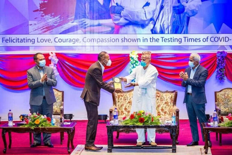 फाउन्डेशनले कोभिड महामारी बिरुद्धको लडाईमा अग्रणी भूमिका निर्वाह गर्ने संस्थालाई कठीन समयमा समेत उत्कृष्ट योगदान पुर्याएबापत संस्थागत विधातर्फ भरतपुर अस्पताल, पाटन अस्पताल, नेपाल प्रहरी अस्पताल, एपिएफ अस्पताल, नेपाली सेना मृत शरीर व्यवस्थापन समूह, हामी नेपाल र नेपाल एम्बुलेन्स सेवासहित सातवटा संस्थालाई सम्मान गरेको छ ।-Photo Source: Facebook/ Manoj Yadav