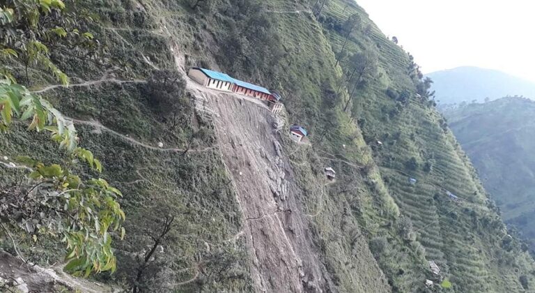 उनले भने, “लगातारको वर्षाका कारण भवनसमेत भत्कने खतरा छ । भिरालो जमिनमा विद्यालय भएकाले पहिरो खस्न थालेको हो ।” कक्षा ८ सम्म पठनपाठन हुँदै आएको उक्त विद्यालयमा हाल २३५ विद्यार्थी अध्ययनरत छन् ।