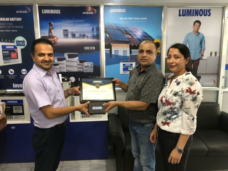काठमाडौं, २९ साउन । लुमिनस पावर ब्याकअप सोलुसन र सनवर्थ सोलार प्यानलको लागि नेपालको आधिकारिक बिक्रेता अमट्रेड प्रा ली ले जे. एस. ट्रेडलिंक प्राली लाई जुलाई महिनाको ‘डिलर अफ द मन्थ’ सम्मान प्रदान गरेको छ ।