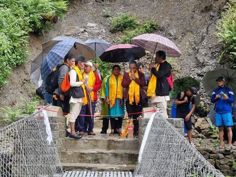 सिन्धुपाल्चोक, ४ भदौ: पाँचपोखरी थाङपाल गाउँपालिका– ३ मा रहेको पवित्र धार्मिक तथा पर्यटकीयस्थल पाँचपोखरीसम्म पुग्न ताङ्गु खोलामा झोलुङ्गे पुल निर्माण गरिएको छ ।गाउँपालिकाका अध्यक्ष टासी लामा र उपाध्यक्ष सुनिता अधिकारीले ७८ मिटर लामो सो पुलको विहीबार शुभारम्भ गर्दै पूर्वाधार विकासमा गाउँपालिकाले उच्च प्राथमिता दिएको बताए ।