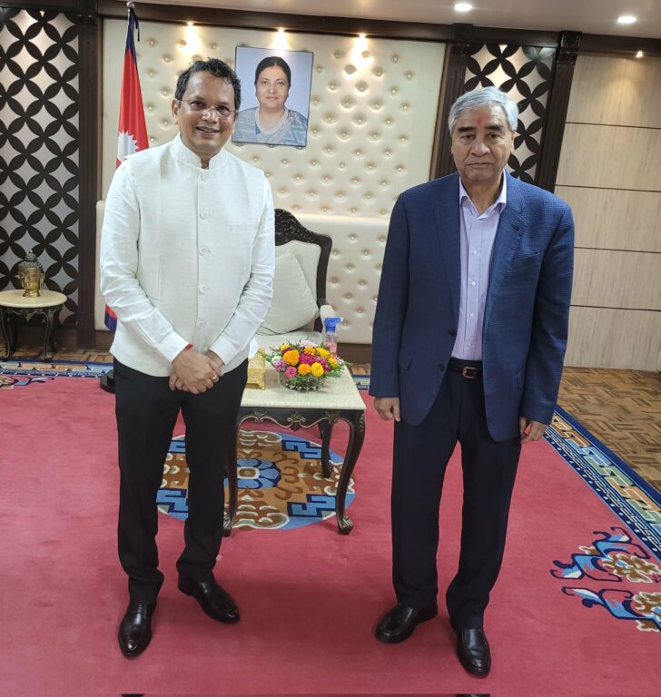 A good meeting between @vijai63 , in-charge of Foreign Affairs Department of Bharatiya Janata Party and our president @SherBDeuba . @NepaliCongress looks forward to strengthening ties with @BJP4India. I am confident that this meeting will be a new beginning pic.twitter.com/f3L7slL1Lw
