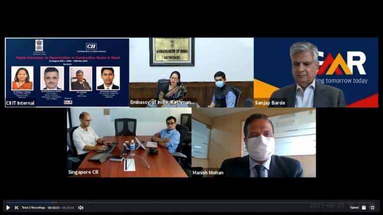 काठमाडौं, ८ भदौ । नेपालमा परियोजना सञ्चालन गर्दा उपलब्ध अवसर सम्बन्धमा भारतीय दुतावासले प्रमुख भारतीय कम्पनीहरुसँग भर्चुअल अन्तरक्रिया कार्यक्रमको आयोजना गरेको छ । दुतावासले भारतीय उद्योग परिसंघ (सीआईआई) तथा नेपाल सरकार भौतिक पुर्वाधार तथा यातायात मन्त्रालयको सम्मुपस्थितिमा पुर्वाधार क्षेत्रसँग सम्बन्धित भारतीय कम्पनीहरुसँग अन्तरक्रिया कार्यक्रमको आयोजना गरेको हो ।