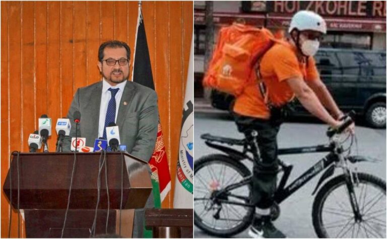अफगानिस्तानका पूर्व सञ्चार तथा प्रविधि मन्त्री सैयद अहमद सदातले साइकलमा खाना डेलिभरीका लागि जाँदै गरेको तस्बिर अगस्ट २४ मा अल जजिरा अरबिकले आफ्नो ट्वीटर ह्याण्डलमा पोस्ट गरेको थियो।