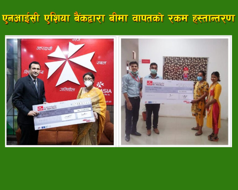 एनआईसी एशिया बैंकद्वारा बीमा वापतको रकम हस्तान्तरण