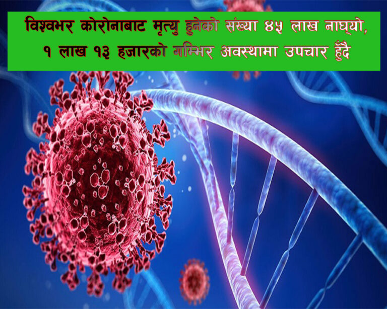 विश्वभर कोरोनाबाट मृत्यु हुनेको संख्या ४५ लाख नाघ्यो, १ लाखको गम्भिर अवस्थामा उपचार हुँदै