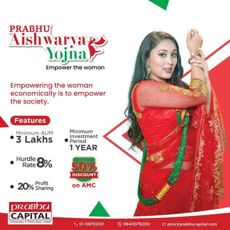 काठमाडौं, १६ भदौ । प्रभु क्यापिटलले प्रभु ऐश्वर्य योजना सञ्चालनमा ल्याएको छ । कम्पनीले लगानी व्यवस्थापन सेवा अन्तर्गत महिलाहरुको महान चाड तिजको विशेष अवसर पारेर महिलाहरुलाई केन्द्रित गरी नयाँ प्रोडक्ट ल्याएको हो ।
