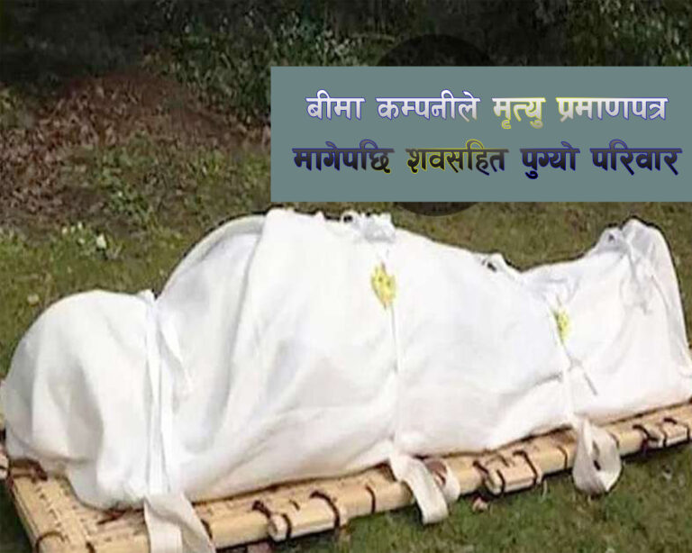 एक व्यक्तिको मृत्यु भएपछि दाबी गर्न गएका परिवारलाई इन्स्योरेन्स कम्पनीले मृत्यु भएको प्रमाण खोजेपछि परिवारले आफन्तको शवसहित कम्पनीमा पेश गर्न परेको हो ।