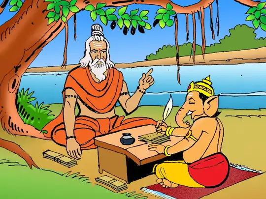 लेखनको क्रममा भगवान गणेशले एकपटक पनि ऋषि वेदव्यासलाई रोक्न भनेनन् । वेदव्यासले पनि द्र्ूत गतिमा शर्तमा पुरा गरेका थिए । दुई ऋषिद्धारा तयार पारिएको महाकाव्य जसले पनि अध्ययन गर्न सक्छ । उनीहरुले १८ पुराणको पनि रचना गरेका थिए ।