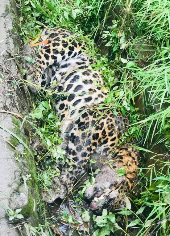 दमौली, ३१ भदौ: तनहुँको म्याग्दे गाउँपालिका–१ माथिल्लो गुणादी राजमार्ग छेउको नालामा बिहीबार बिहान मृत अवस्थामा फेला परेको चितुवा ।-तस्बिर : कृष्ण न्यौपाने-रासस