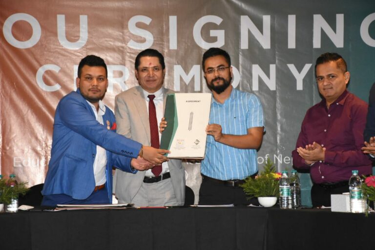 काठमाडौं, १ असोज । सर्भिस माण्डु, रिटेल सेवा र नेपाल शैक्षिक परामर्श संघ (इक्यान) बीच सम्झौता पत्रमा हस्ताक्षर भएको छ । शुक्रबार काठमाडौंको धुम्बाराहीमा अवस्थित् अकामा होटेलमा आयोजित कार्यक्रममा रिपोर्टर्स क्लब नेपालका सभापति एवम् प्राइम टिभीका अध्यक्ष ऋषि धमलाको प्रमुख आतिथ्यतामा इक्यानका अध्यक्ष प्रकाश पाण्डे तथा सर्भिस माण्डु र रिटेल सेवाका अध्यक्ष सुरज केसीले सम्झौता पत्रमा हस्ताक्षर गरेका हुन् ।
