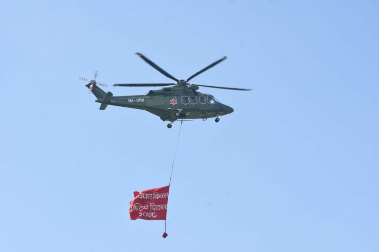 नेपाली सेनाले हेलिकप्टरमा संविधान दिवस, राष्ट्रिय दिवस बाँधिएको ब्यानर बोकेको थियो भने पुष्पवृष्टि पनि गरेको थियो। २०७२ असोज ३ गते संविधान सभाले नेपालको संविधान जारी गरेको थियो।