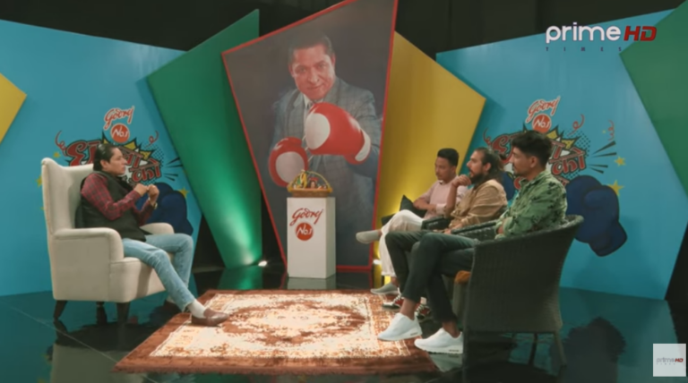 काठमाडौं, १० असोज । कमेडी च्याम्पियन्सका विजेता भरतमणि पौडेल, उपविजेता बिक्की अग्रवाल र सन्तोष थापा ऋषि धमलाको चर्चित कार्यक्रम ‘धमलाको हमला’ मा अतिथिको रुपमा आएका छन् । अग्रवाल र थापाले पौडेलले कमेडी च्याम्पियन्सको टाईटल जित्दापनि आफूहरु खुशी नै रहेको प्रतिक्रिया दिएका छन् । कार्यक्रममा पौडेल, अग्रवाल र थापाले विभिन्न व्यक्तित्वको क्यारिकेचर गरेका थिए ।