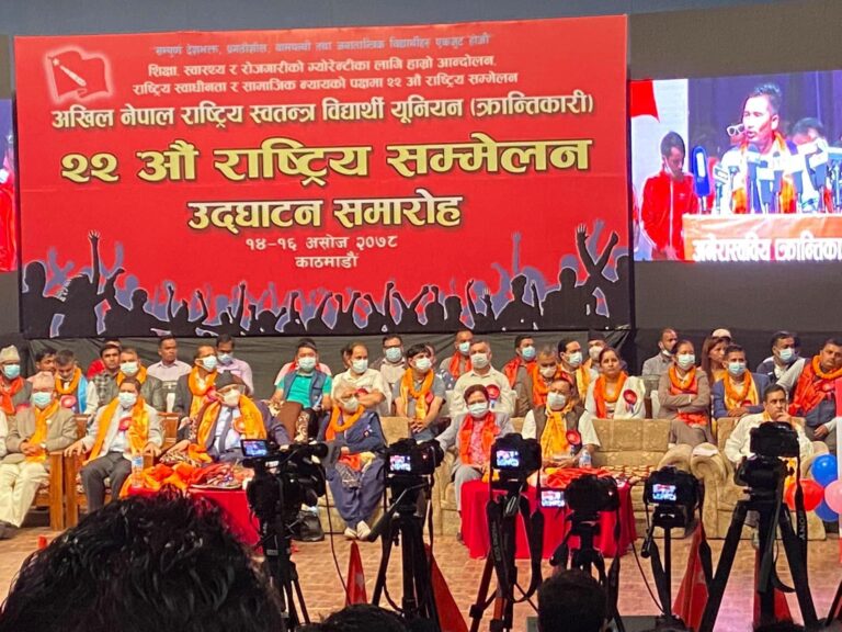 काठमाडौं, १४ असोज । नेकपा (माओवादी केन्द्र) को भातृ संगठन अनेरास्ववियु (क्रान्तिकारी) को २२औं राष्ट्रिय सम्मेलन सुरु भएको छ । काठमाडौं प्रज्ञा भवनमा सुरु सम्मेलनको नेकपा (माओवादी केन्द्र) का अध्यक्ष पुष्पकमल दाहालले गरेका छन् ।