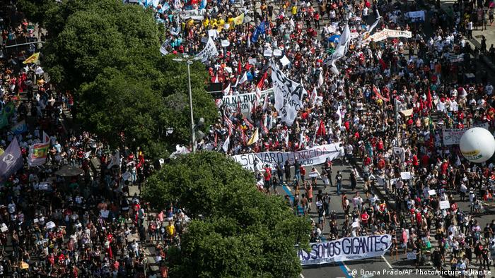 उक्त प्रदर्शनको आयोजना विपक्षी दलले गरेको हो। शनिबार देशका अधिकांश शहरमा प्रदर्शनको आयोजना गरिएको जनाइएको छ । च्याम्बरमा डेप्युटिजमा बोल्सोनारोमाथि महाभियोग लगाउन माग गर्दै १ सयभन्दा बढी निवेदन परेका छन् । ब्राजिलको सर्वोच्च अदालतले हालै मात्र बोल्सोनारोमाथि विभिन्न छानबिन अघि बढाउन अनुमति दिएको थियो । उनले सन् २०१९ जनवरीमा पदभार सम्हालेका थिए । विगत समयमा बोल्सोनारो कोभिड–१९ महामारीको व्यवस्थापनको विषयमा आलोचित भएका थिए ।-Photo Source: DW