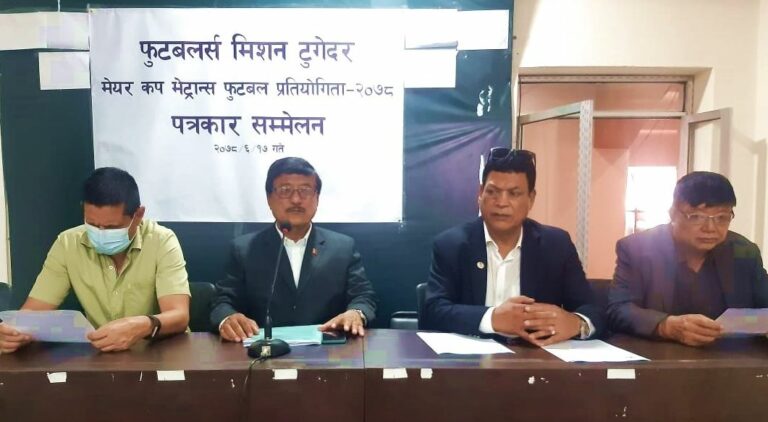 असोज १७, काठमाण्डौ । मेयर कप भेट्रान्स फुटबल प्रतियोगिता कात्तिकमा आयोजना हुने भएको छ । फुटबलर्स मिसन टुगेदरको आयोजनामा हुने प्रतियोगिता कात्तिक ६ देखि १६ गतेसम्म हुनेछ । खेल एन्फा कम्प्लेक्समा हुनेछ भने फाइनल दशरथ रंगशालामा हुनेछ ।