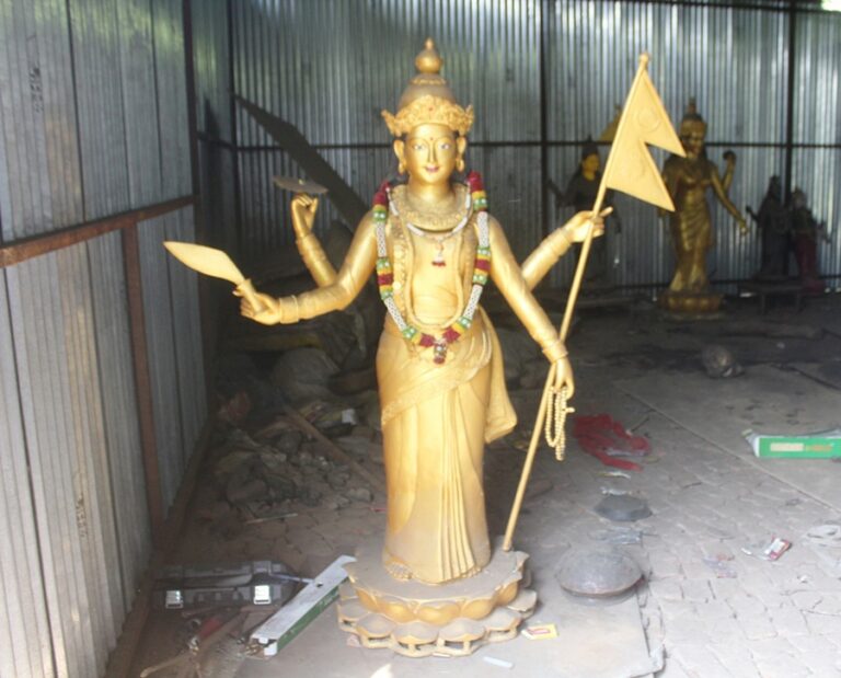 कञ्चनपुर, १८ असोज: भीमदत्त नगरपालिका– ८ तिलाचौरस्थित भम्केनीधाममा निर्माण हुने नेपाल आमाको मूर्तिको नमूना । धार्मिक पर्यटकीय क्षेत्र भम्केपानीमा ७५ फिटको नेपाल आमाको मूर्ति निर्माणको कार्य भइरहेको छ ।-तस्वीर : राजेन्द्रप्रसाद पनेरु-रासस