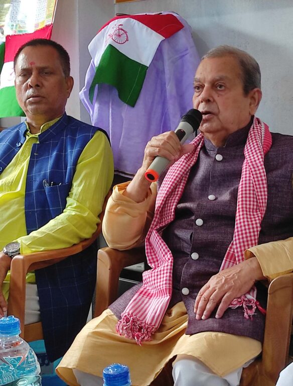 राजविराज, १८ असोज: सप्तरीको राजविराजस्थित लोकतान्त्रिक समाजवादी पार्टी नेपालको कार्यालयमा सोमबार आयोजित पत्रकार सम्मेलनमा बोल्दै लोसपाका राष्ट्रिय अध्यक्ष महन्थ ठाकुर ।-तस्बिर : अरुणकुमार यादव-रासस