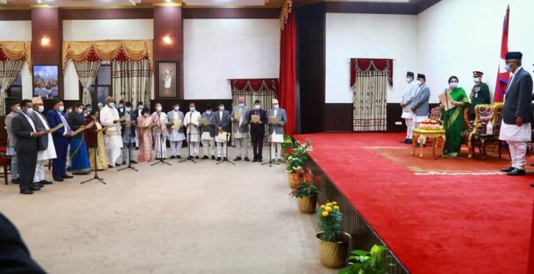 देउवा नेतृत्वको मन्त्रिमण्डल प्रधानमन्त्रीका अलावा २१ मन्त्री र ३ राज्यमन्त्री रहेकोमा ५ मन्त्री र १ राज्यमन्त्री महिला छन् । देउवा सरकारमा कुल २० प्रतिशत महिला सदस्य छन् । प्रतिशतका हिसाबले काँग्रेसले सबैभन्दा कम र माओवादी केन्द्रले सबैभन्दा बढी महिलालाई मन्त्री बनाएको छ ।-Photo: Mukunda Kalikote
