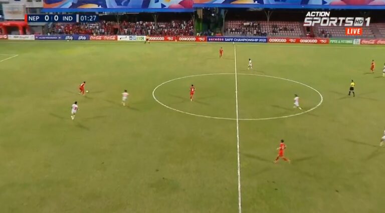 काठमाडौं, २४ असोज । माल्दिभ्समा जारी साफ च्याम्पियनसिप अन्तर्गत जारी नेपाल र भारतबीचको खेलको पहिलो हाफमा गोलरहित बराबरी भएको छ । खेलमा भारत हाबी भएको छ । नेपालले भने आज रक्षात्मक खेलेको छ।