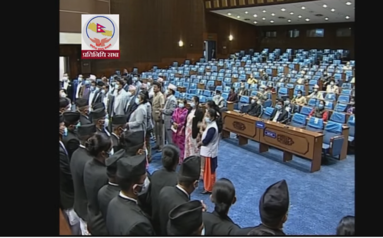 काठमाडौं, २५ असोज । प्रतिनिधिसभाको आजको बैठकमा पनि नेकपा (एमाले) का सांसदहरुले अवरोध गरेका छन् । एमाले सांसदहरुले अहिले नाराबाज िगरिरहेका छन् । एमाले सांसदहरुको नाराबाजीकै बीच सरकारका कानून, न्याय तथा संसदीय मामिलामन्त्री दिलेन्द्रप्रसाद बडुले राष्ट्रिय मधेशी आयोगको वार्षिक प्रतिवेदन पेश गरेका छन् ।