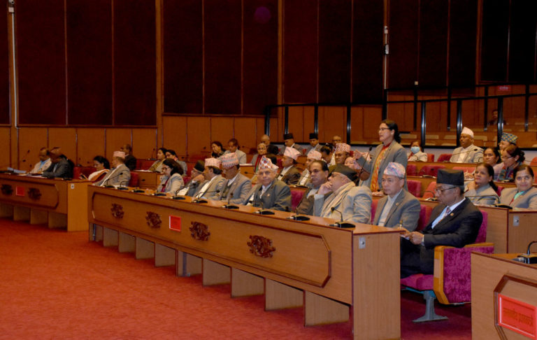 यस्तै, सोमबार नै राष्ट्रियसभाका अध्यक्ष गणेश तिमिल्सिनाले अर्को सूचना नहुँदासम्मका लागि बैठक स्थगित गरेपछि राष्ट्रियसभा सदस्यहरुले विदा पाएका छन् । अधिकांश सांसद् गाउँ गइसकेकाले उनीहरु सोमबारको बैठकमा उपस्थित थिएनन् । सोमबार नेकपा (एमाले)का सांसदहरुको विरोधका बाबजुद प्रतिनिधिसभा बैठकले रेल्वे विधेयक २०७८ फिर्ता लिएको छ ।-File Photo
