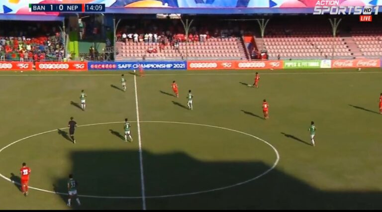 काठमाडौं, २७ असोज । नेपालले बङ्गलादेशविरुद्ध बराबरी गोल गरेको छ । अञ्जन बिष्टले पेनाल्टीमार्फत् बराबरी गोल गरेका हुन् ।