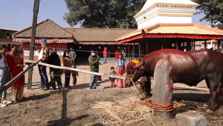 काठमाडौं, २८ असोज । भक्तपुरको परम्परागत ऐतिहासिक तथा सांस्कृतिक खःमेय् व्वाकेगु (राँगो दौडाउने) जात्रा आज मनाइँदै छ । खःमेय् व्वाकेगु जात्रा प्रत्येक वर्ष बडादसैँको महानवमीको साँझ मनाउने परम्परा रहिआएको छ । कोरोनाको सङ्क्रमण घट्दै गए पनि जोखिम पूर्णरुपमा नहटेकाले स्थानीय निकायको पहलमा दिउँसो ३ बजे नै सीमित स्थानीयवासीद्वारा जात्रा गर्ने निर्णय गरिएकोे छ ।