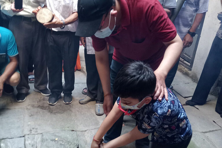 काठमाडौँ महानगरपालिका–२७ मा पर्ने असनस्थित तुलाधर समुदायको कुल देवताको घरमा भेला भएर उनीहरुले एकापसमा दसैँ मनाएका हुन् । प्रत्येक वर्ष सो समुदायले खड्गजात्रा निकालेर त्यस आसपास क्षेत्रमा बाजागाजासहित परिक्रमा गर्ने गरेकामा कोरोना महामारीका कारण यसपटक जात्राको कार्यक्रम स्थगन गरेका थिए ।