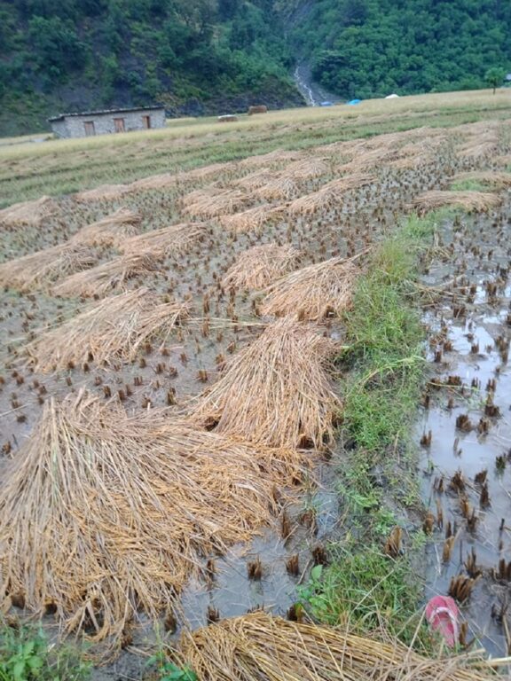 रुकुम, ४ कात्तिक । भारी वर्षाको असर रुकुममा पनि परेको छ । नदीनालाको बहाव ह्वात्तै बढेको छ । धानबालीमा असर परेको छ । काटेर राखेका धानका बाला पानीमा डुबेका छन् ।