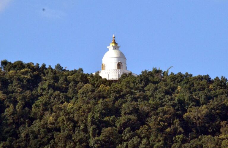 काठमाडौँ, ७ कात्तिक: कास्की जिल्लाको पुम्दीभुम्दी अनुडाँडाको मीन थुम्कीमास्थित धार्मिक तथा पकर्यटीयस्थल शान्ति स्तूप । यस शान्ति स्तुपको उचाइ ११५ फिट गोलाइ ३४४ फिट रहेको छ ।-तस्वीर : चन्द्रकला क्षेत्री-रासस