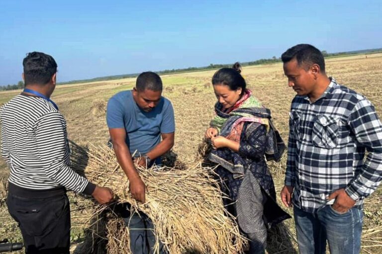 कञ्चनपुर, ९ कात्तिक: पुर्नवास नगरपालिकाको सिमरीस्थित किसानको खेतमै पुगेर वर्षाले धानबालीमा पु¥याएको क्षतिबारे जानकारी लिँदै पूर्वमन्त्री एवं प्रतिनिधिसभा सदस्य बीना मगर ।