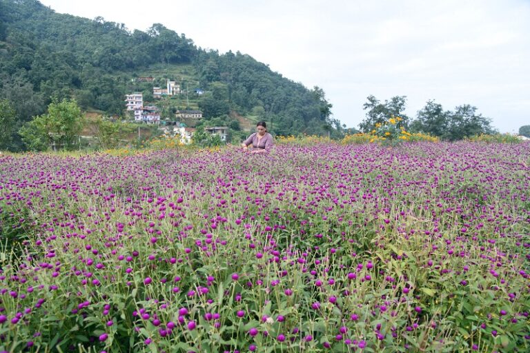 भक्तपुर, १० कात्तिक । तिहार नजिकिँदै गर्दा सूर्यविनायक नगरपालिका–७ गुण्डुमा व्यावसायिक रुपमा गरिएको फूलखेतीमा मखमली फूल टिप्दै किसान ।