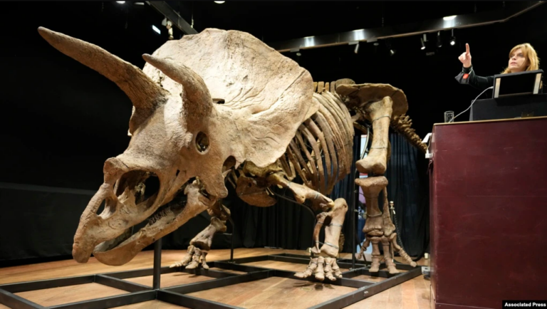 एजेन्सी, १२ कात्तिक। अहिलेसम्म फेला परेको सबैभन्दा ठूलो ट्राइसेराटप्स डाइनसोरको जीवावशेष प्यारिसमा विक्री भएको छ। सबैभन्दा ठूलो ट्राइसेराटप्स डाइनसोरको जीवावशेष बिहिबार प्यारिसमा विक्री भएको हो। अमेरिकी प्रख्यात जीवावशेष संकलान्कारले डाइनसोरको जीवावशेषको लिलामी जितेको जनाइएको छ।