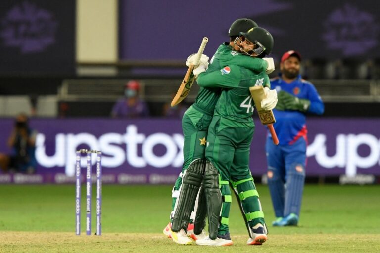 अफगानिस्तानले दिएको १ सय ४८ रनको लक्ष्य पाकिस्तानले १८ ओभर ६ बलमा ५ विकेट गुमाएर पूरा गर्यो । यस जितसँगै समूह २ को पाकिस्तानले ३ खेलमा ६ अंक जोड्दै शीर्ष स्थानमा रहेको छ । अफगानिस्तान २ खेलमा २ अंक जोडेर दोस्रो स्थानमा रहेको छ ।-Photo: Agency
