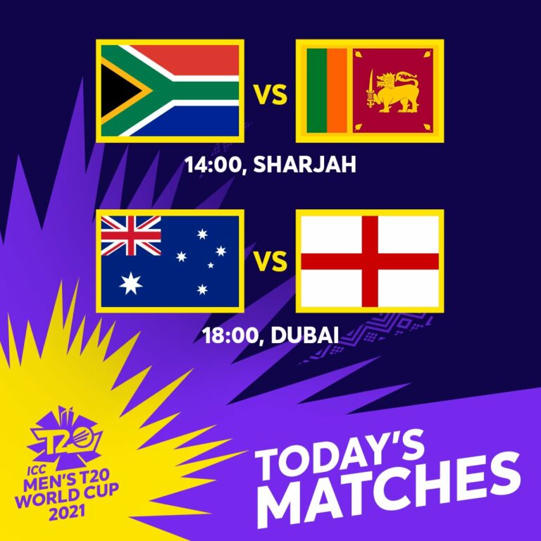 काठमाडौं, १३ कात्तिक । आईसीसी टी–ट्वान्टी विश्वकप क्रिकेटमा आज (शनिबार) दुई खेलहरु हुँदैछन् । आज हुने पहिलो खेलमा दक्षिण अफ्रीका र श्रीलंकाबीच प्रतिस्पर्धा हुनेछ । सारजाह क्रिकेट मैदानमा हुने खेल दिउँसो ३ः४५ बजेबाट सुरु हुनेछ ।