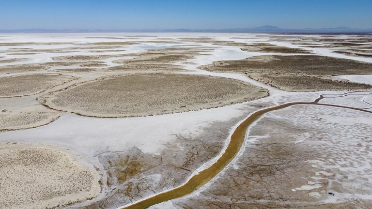 टर्कीको तुज तालको हवाई दृश्य। उक्त ताल टर्कीको दोस्रो ठूलो ताल हो। यहाँ धेरै चराका प्रजातिहरू पाईने गर्दछ। लेक तुजले यस वर्ष जलवायु परिवर्तनको शिकार भएकाले यसको पानी पूर्ण रूपमा घटेको देखेको छ। खडेरीले यस क्षेत्रलाई मारेको छ र दशकौं लामो गलत कृषि नीतिहरूले तालको भूमिगत पानीलाई समाप्त पारेको छ।