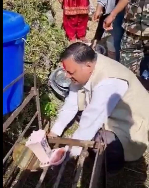 बागलुङ निसीको दलित बस्तीमा खाना खाए पश्चात आफ्नो भाडा आफै माझ्दै