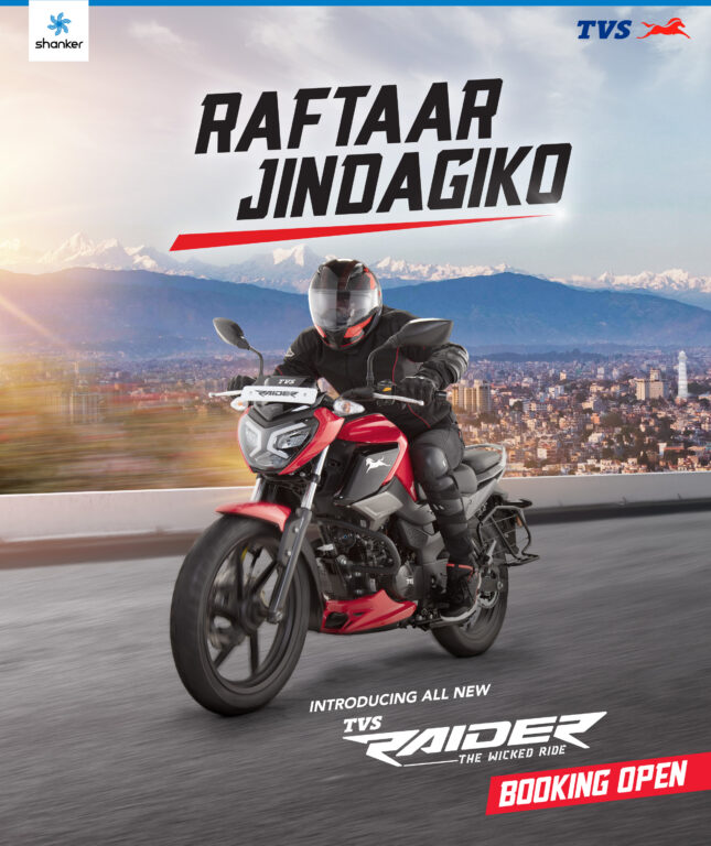 । जगदम्बा मोटर्स प्रालिले आजैका मितिबाट नयाँ टीभीएस रेडरका लागि बुकिंग खुल्ला गरिएको जानकारी दिएको छ ।