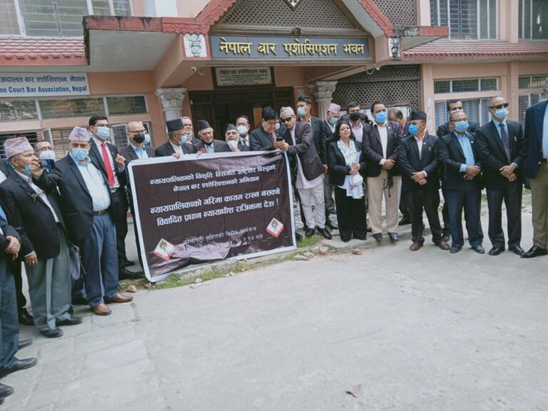 आइतबारदेखि सर्वोच्च अदालतको परिसरमा नेपाल बार एशोसिएशनको नेतृत्वमा हातमा कालो पट्टी बाँधेर कानून व्यवसायी, बार अधिकारी, अधिवक्ता, वरिष्ठ अधिवक्ता लगायतले प्रधानन्यायाधीश जबराको राजीनामा माग्दै विरोध प्रदर्शन गर्दै आएका छन् ।