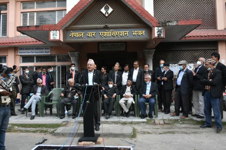 काठमाडौं, १६ कार्तिक । नेपाल बार एशोसिएशनले आजपनि आन्दोलन जारी राखेको छ । पूर्वघोषित कार्यक्रमअन्तर्गत नै बारले आफ्नो आन्दोलन गरेको हो । प्रधानन्यायाधीश चोलेन्द्र शमशेर जबराले राजीनामा दिनुपर्ने माग राख्दै बारले आन्दोलन गरेको हो ।