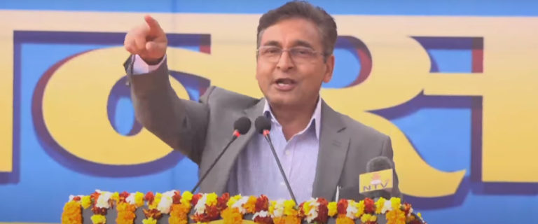 अहिले परमादेशका कारण मात्र एमाले प्रतिपक्ष भएकाे हुनु परेकाे उनले दाबी गरे । उनले भने, “संसारभरि सत्तापक्षविरुद्ध गठबन्धन हुन्छ । यहाँ त प्रतिपक्षविरुद्ध चुनावसम्म महागठबन्धन गर्ने भनिएकाे छ । याे पराजित मानसिकताकाे उपज हाे । एमालेसँग एक्लै लड्ने हैसियत र हिम्मत कसैसँग छैन ।”