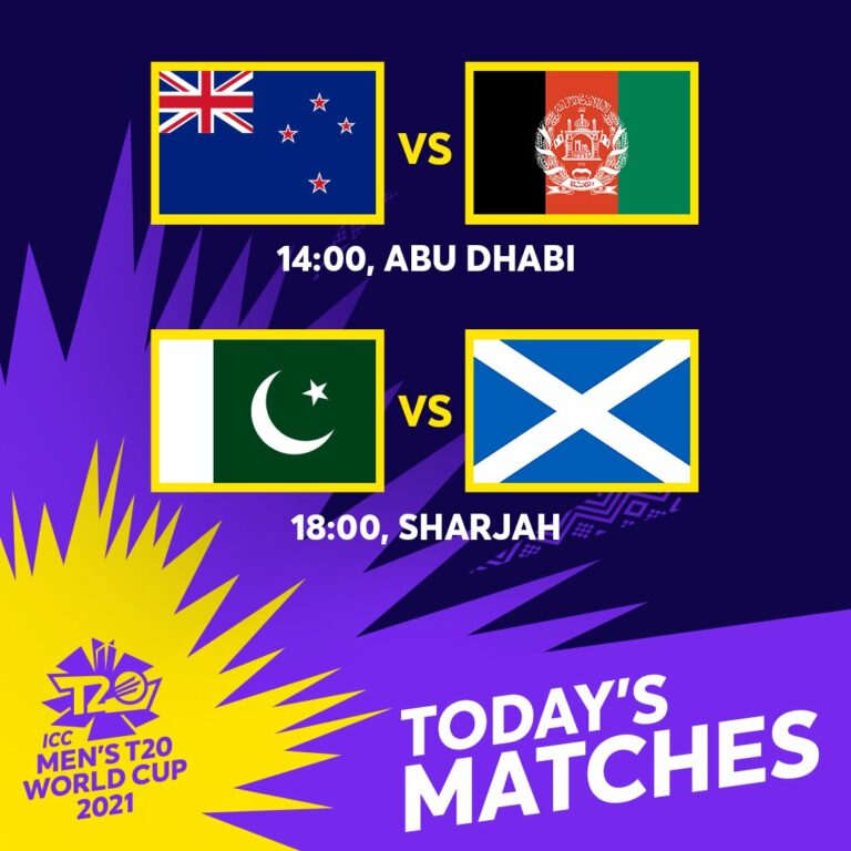 यस्तै, आज नै हुने दोस्रो खेलमा पाकिस्तान र स्कटल्यान्ड प्रतिस्पर्धा गर्दैछन् । सारजाय क्रिकेट स्टेडियममा हुने यस खेल राति ७ः४५ बजे सुरु हुँनेछ ।