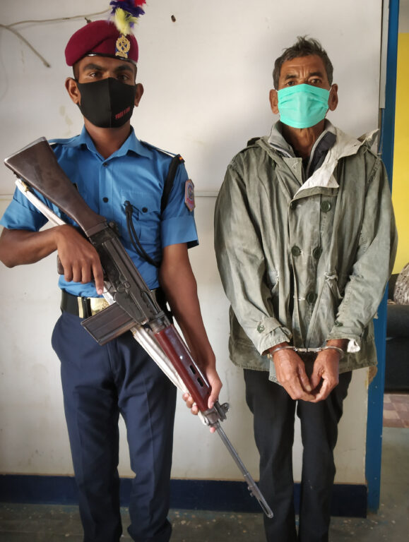 राप्ती गाउँपालिका–ं ३ बसन्तपुरका ६४ वर्षीय चौधरीलाई दाङ प्रहरीले मङ्गलबार सार्वजनिक गरेको हो । । तस्बिर ः दीपक बोहरा÷रासस