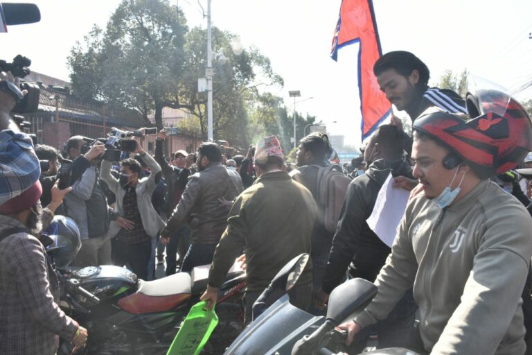 काठमाडौं, २८ कार्तिक । जनताको अदालत बन्द गर्न पाईँदैन भन्दै २५ वटा मोटरसाईकलमा युवाहरुले आज सर्वोच्च अदालतको मूल गेटअघि ¥याली निकालेका छन् । उनीहरुले जनताले न्याय पाउने अधिकार बञ्चित गर्न पाईँदैन, इजलास बहिष्कार गर्ने न्यायाधीशहरु मुर्दावाद भन्दै नारा लगाएका थिए । प्रदर्शनमा उत्रिएका एक दर्जन युवाहरुलाई प्रहरीले पक्राउ गरेको छ ।