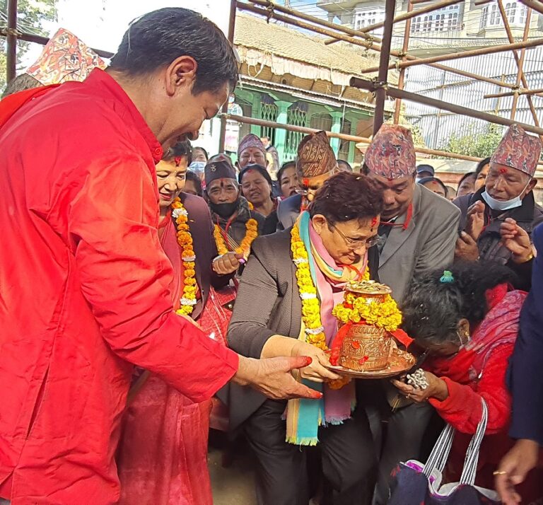 ललितपुर, २९ कात्तिक: ऊर्जा, जलस्रोत तथा सिँचाइमन्त्री पम्फा भुसालले ललितपुर महानगरपालिका वडा नं ८ स्थित बालकुमारी मन्दिर पुनःनिर्माण कार्यको शिलान्यास गरेकी छिन् । आज बिहान उनले मन्दिर पुनःनिर्माणको आरम्भ गरेकी हुन् ।
