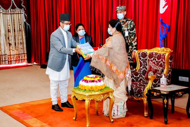 काठमाडौँ, २९ कात्तिक: राष्ट्रपति विद्यादेवी भण्डारीसमक्ष अख्तियार दुरुपयोग अनुसन्धान आयोगले आज आर्थिक वर्ष २०७७-०७८ को वार्षिक प्रतिवेदन पेश गरेको छ । राष्ट्रपति भवन, शीतल निवासमा आयोजित कार्यक्रममा आयोगका प्रमुख आयुक्त प्रेमकुमार राईले नेपालको संविधानको धारा २९४ बमोजिम उक्त प्रतिवेदन पेश गरेका हुन् ।-रासस