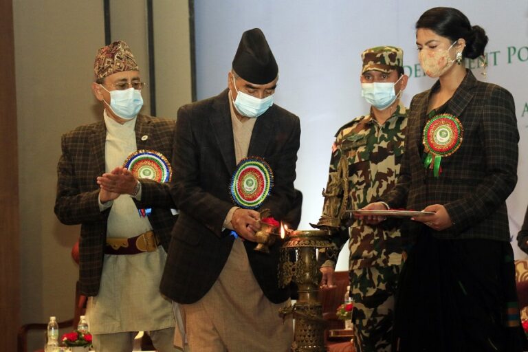 काठमाडौँ, ३० कात्तिकः प्रधानमन्त्री शेरबहादुर देउवा मङ्गलबार राजधानीमा स्वतन्त्र ऊर्जा उत्पादक सङ्घ (इपान) को १९औँ र २०औँ वार्षिक साधारणसभा कार्यक्रम उद्घाटन गर्दै ।-तस्बिर : रत्न श्रेष्ठ-रासस