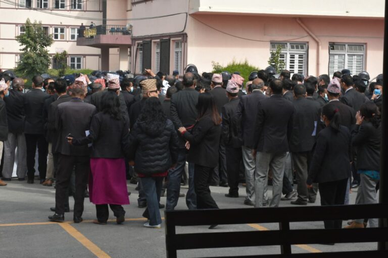 काठमाडौं, २ मंसिर । प्रधानन्यायाधीश चोलेन्द्र शमशेर जबराको राजीनामा माग गर्दैै धर्ना दिने क्रममा सर्वोच्च अदालत परिसरमा कानुन व्यवसायीहरु घाइते भएका छन् ।