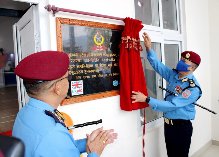 रुपन्देही, २ मंसिर । प्रहरी महानिरीक्षक शैलेश थापा क्षेत्रीले लुम्बिनी प्रदेश प्रहरी तालिम केन्द्र बुटवल रुपन्देहीको परिसरमा नवनिर्मित बहुउद्देश्यीय भवनको बिहीबार आयोजित एक कार्यक्रमबीच उद्घाटन गरे । उनले उक्त भवनको निरीक्षण गर्नुका साथै सोही परिसरभित्र वृक्षरोपण समेत गरे ।