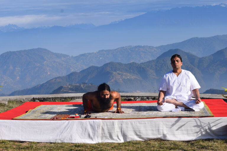 काठमाडौं, ४ मंसिर । चन्द्रागिरि डाँडामा शनिबार विहान योग ध्यान तथा योग प्रशिक्षण गराउँदै भारतीय योगगुरु रामदेव र पतञ्जलि योगपीठका गुरु आचार्य बालकृष्ण ।